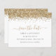 A value for money BUDGET alternative on a smaller size 4.5 x 5.6” semi-gloss 110lbs weight, which is of similar thickness to a postcard (however is not suitable to use as a postcard.). PLEASE NOTE there is ONE per sheet. Budget Script Gold Glitter Save the Date. Glam style with a faux glitter border at the top on each side and an elegant script for the header Save The Date. Easily personalise the text. On the back, add your QR code to your wedding website by replacing the QR code on the sample. You can create QR codes for free online. Simply search “QR code creator” and lots of options come up to create for free.