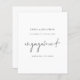 Budget Script Minimalist Engagement Announcement> A budget price SMALLER 4.5” x 5.6” alternative. Available in a SEMI-GLOSS 110 lb CARD STOCK which is the default option (thicker for invitations), OR a SATIN FINISH 80 lb THINNER PAPER STOCK (ideal for enclosures). A simple and elegant black and white design to announce your happy news. Engagement is in a modern set script is in the center.The rest of the text you can easily personalise. Text and background colors can be changed if you wish to better suit your wedding theme via the customise further option.