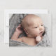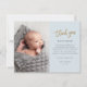 This modern photo thank you note features gold script thank you, personal message and a vertical photo on the front. The back includes a second baby photo that is a full bleed horizontal photo.