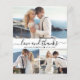 Budget, Modern Minimalist Elegant „Love and thanks” Script 3 Photo Collage Wedding Thank You personalized affordable low budget thin card. Stylish wedding thank you card template featuring 3 photo on the front and 1 photo on the back.