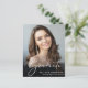Celebrate your graduate's achievements with this stylish budget-friendly graduation announcement and party invitation. Her favorite photo fills the card with "Graduate" overlayed on top in a white script; underneath, add her name, school and class year. On the reverse side, add an additional photograph and a graduation party or open house details.
