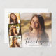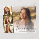 Modern budget-friendly graduation thank you featuring the graduate's photo overlayed with a strip of three smaller square photos, "thank you" in a stylish script, and their name, school and class year in simple typography. On the reverse, customize a thank you message and add the graduate's name in a signature-like script.