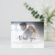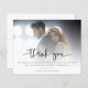 A value for money BUDGET alternative on a smaller size 4.5 x 5.6” semi-gloss 110lbs weight, which is of similar thickness to a postcard (however is not suitable to use as a postcard.). PLEASE NOTE there is ONE invite per sheet. Budget Script Photo Overlay Wedding Thank You. Simply replace the sample photo with your own favorite. A gradient overlay layer is on top of your photo so it fades out as it reaches the center with the text partially overlaid on top. Thank You is in a stylish set script with swashes and easily personalise the rest of the text.
