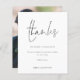 Script Photo Wedding Newlywed Thanks. A budget price SMALLER 4.5” x 5.6” alternative. Available in a SEMI-GLOSS 110 lb CARD STOCK which is the default option (thicker for invitations), OR a SATIN FINISH 80 lb THINNER PAPER STOCK (ideal for enclosures). Envelopes are an optional extra and are slightly larger than the card size. A minimalist contemporary design with a set stylish handwriting style script for Thanks. On the back replace the sample picture with your own favorite from your day as a keepsake for your guests. Easily personalise the rest of the text with your message and names.