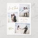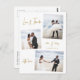 Elegant Budget Minimalist Hand Lettered Script Photo Collage Affordable Wedding Thank You PostCard in Gold and White. Simple cute wedding card template featuring three (3) photo on the front, collage pictures loosely arranged and one photo on the back side. With the text "Love and thanks" in a pretty hand lettered typography script font. Add your name and thank you message.