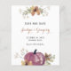 Budget Elegant Script Fall Pumpkins Autumn Save the Date with elegant calligraphy script, in beautiful purples, tan, rust, sage watercolor florals and pumpkin make an elegant fall wedding save the date card.