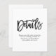 A value for money BUDGET alternative on a smaller size 4.5 x 5.6” semi-gloss 110lbs weight, which is of similar thickness to a postcard (however is not suitable to use as a postcard.). PLEASE NOTE there is ONE invite per sheet. Budget Script QR Code Wedding Details Enclosure. Add your QR code to your wedding website on the back makes this a convenient option for your guests to see all the details. You can create QR codes for free online. Simply search “QR code creator” and lots of options come up to create for free. A trendy set typography with heart motif in black for the main heading Details and the rest of the text which can easily personalise.