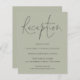 Budget Script Reception Details Light Sage Green Wedding Enclosure. A budget price SMALLER 4.5” x 5.6” alternative. Available in a SEMI GLOSS 110 lb CARD STOCK which is the default option (recommended for invitations), OR a SATIN FINISH 80 lb THINNER PAPER STOCK (ideal for enclosures). Envelopes are an optional extra and are slightly larger than the card size. An elegant set handwriting style script for the heading and the rest of the text you can easily personalise.