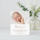 This modern photo baby baptism thank you card features hand lettered calligraphy script thank you art that is moveable and that you can easily change the color of, a horizontal photo and editable text. Click the edit button to customize this design.