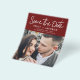 Budget Modern and Elegant Handwritten Script Square Photo Save the Date Wedding Card. The save the date invitation card includes a chic and stylish typography with a simple and minimalist design on a Burgundy background that you can add your customized engagement photograph picture to.