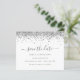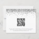 A value for money BUDGET alternative on a smaller size 4.5 x 5.6” semi-gloss 110lbs weight, which is of similar thickness to a postcard (however is not suitable to use as a postcard.). PLEASE NOTE there is ONE per sheet. Budget Script Silver Glitter Save the Date. Glam style with a faux glitter border at the top on each side and an elegant script for the header Save The Date. Easily personalise the text. On the back, add your QR code to your wedding website by replacing the QR code on the sample. You can create QR codes for free online. Simply search “QR code creator” and lots of options come up to create for free.