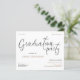 There are two paper options to choose from for this size (4.5 x 5.6”) in the Budget range. For this product, I would recommend the semi-gloss which is a 110 gsm card stock, similar in thickness to a postcard. The Satin option is a much thinner paper 80gsm. The default is set to semi-gloss. PLEASE NOTE there is ONE per sheet. Budget Script Text Graduation Party Invitation. A simple typographical design, with the main header, Graduation Party, in a set trendy black font. The rest of the text in black and gold is easily personalised and you can also change the editable text colors and style if you wish via the click to customize further option as well as the gold background on the back.