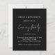A value for money BUDGET alternative on a smaller size 4.5 x 5.6” semi-gloss 110lbs weight, which is of similar thickness to a postcard (however is not suitable to use as a postcard.). PLEASE NOTE there is ONE invite per sheet. Budget Script Wedding Evening Party Black Invitation. A set handwritten style for Evening Party and the rest of the text you can easily personalise. The text and background colors can be changed to any or your choice via the customise further option.
