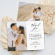 Budget, Modern, Elegant Heart Script Photo Affordable Cheap Wedding Thank You Card in Black and White. Send your nice thanks in style with your favorite wedding photos with our elegance wedding thank you cards! Stylish, minimalist wedding card template featuring 1 photo on the front and one (1) photo on the reverse side. "Thank you" text in a hand lettered calligraphy script and pink love heart motif. Easy to add your name and thank you message. If if you need assistance feel free to contact designer!