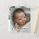 Modern Script Welcome Baby Photo Birth Details Thank you card. The back includes a second photo and thank you message that you can personalize or remove if you prefer to hand write your thank you. Click the edit button to customize this design.
