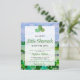 This unique budget Baby Shower Invitation is decorated with a textile art Irish country scene with shamrocks and stylish script typography.