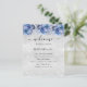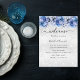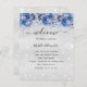 A modern, elegant wedding program, timeline. Faux silver looking background decorated with faux sparkles and blue flowers. Personalize and add your names and wedding details. Black colored letters. If you have more text it's possible to reduce the line space. You can also add text on the back.