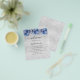 A modern, elegant wedding program, timeline. Faux silver looking background decorated with faux sparkles and blue flowers. Personalize and add your names and wedding details. Black colored letters. If you have more text it's possible to reduce the line space. You can also add text on the back.