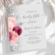 The left-hand edge of this elegant modern 50th anniversary party invitation features a burgundy and blush watercolor floral bouquet trimmed with silver foliage and faux silver glitter. The customizable text combines charcoal gray handwriting, copperplate and italic fonts on a pale gray background. The reverse side features a matching design.