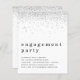 A value for money BUDGET alternative on a smaller size 4.5 x 5.6” semi-gloss 110lbs weight, which is of similar thickness to a postcard (however is not suitable to use as a postcard.). PLEASE NOTE there is ONE invite per sheet. Silver Glitter Engagement Party Invite.The header is large in stylish lowercase with the details beneath. Lots of white space at the top for a contemporary feel! Easily personalise the text to your own details.