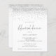Silver Glitter Wedding Rehearsal Dinner. A budget price SMALLER 4.5” x 5.6” alternative. Available in a SEMI-GLOSS 110 lb CARD STOCK which is the default option (thicker for invitations), OR a SATIN FINISH 80 lb THINNER PAPER STOCK (ideal for enclosures). Envelopes are an optional extra and are slightly larger than the card size. This modern design has elegant informal set script for Rehearsal Dinner and silver faux glitter borders at the top on both sides. The rest of the typography you can easily personalise.