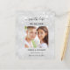 A modern wedding Save the Date photo card. A faux silver metallic looking background. Decorated with faux glitter dust. Personalize and add your photo, wedding details and add your own qr code to your wedding website.