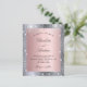 A modern, elegant wedding invitation. Faux silver and blush pink metallic looking background decorated with faux silver glitter dust. Personalize and add your names and wedding details. Black colored letters.