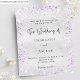 A modern, elegant and minimalist wedding invitation. Faux silver metallic looking background decorated with purple and faux silver glitter dust. Personalize and add your names and wedding details. Black colored letters.