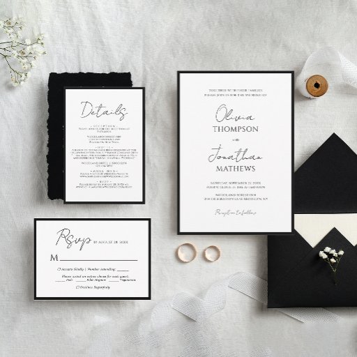 BUDGET Simple Black Tie White Script Wedding