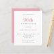 Budget Simple Text Blush Pink 90th Birthday Invitation. A value for money smaller 4.5 x 5.6 inch alternative defaulted to the semi gloss option which is recommended for invitations and is a similar thickness to a postcard. The satin option is much thinner paper. The font color and type can be changed via the edit menu. You can also change text and background colors on either side if you wish.