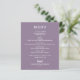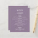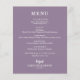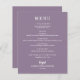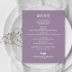A small affordable, value paper lavender dinner menu card with your food choices in chic white lettering is perfect for a modern wedding reception, wedding rehearsal dinner, anniversary party, or any special event with a sit-down dinner. *Measures 4.5" x 5.6" (or choose from 2 other sizes) printed on 110 lb. weight paper. Envelopes are available at an additional charge. The Live Design Service can help you with your design layout, size or adjust the colors if needed.