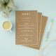 An excellent value, a 5.5" x 8.5" gold dinner menus are printed on thinner, lightweight 80 lb uncoated matte paper and features your food choices in chic white lettering. Perfect for a modern wedding reception, wedding rehearsal dinner, anniversary party or any special event with a sit-down dinner. MORE DESIGNS, sizes and colors in our store.