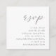 This simple, elegant wedding website enclosure card features the title "rsvp" in charcoal gray script font over a gray italic text aligned with the right margin on a white background. Upload your wedding website QR code to replace the sample image on the reverse side, framed by the words "scan me to RSVP."