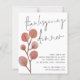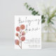 Budget Simple Leaves Thanksgiving Dinner Invitation. A budget price SMALLER 4.5” x 5.6” alternative. Available in a SEMI GLOSS 110 lb CARD STOCK which is the default option (recommended for invitations), OR a SATIN FINISH 80 lb THINNER PAPER STOCK (ideal for enclosures). Envelopes are optional and are slightly larger than the card size. Artsy watercolor leaves in autumnal coral pink colors are to the left, with trendy handwriting style set typography for Thanksgiving Dinner. Easily personalise the rest of the text with the details of your event. A coordinating color is on the back.