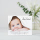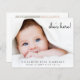 Simple budget-friendly photo birth announcement. Your newborn's photo fills the front and is overlayed with "she's here!" "he's here!" or "I'am here!" in a contemporary script (you can move this text to another area on the card to suit your photo by editing in the design tool). Add his or her name, arrival date and birth stats. On the reverse side, add four additional family photos, a "welcomed by" message and the parent's and sibling's names.