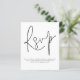 A value for money BUDGET alternative on a smaller size 4.5 x 5.6” semi-gloss 110lbs weight, which is of similar thickness to a postcard (however is not suitable to use as a postcard.). PLEASE NOTE there is ONE invite per sheet . Simple QR Code Script Wedding RSVP. A convenient option enclosure to ask your guests to scan your QR code to your wedding website to RSVP. A stylish set typography in black for the main heading RSVP complementing the rest of the text which you can easily personalise, with QR code on the back. Simply replace with your own.