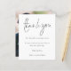 Simple Script Photo Wedding Thank You. A budget friendly SMALLER 4.5” x 5.6” alternative. Available in a SEMI GLOSS 110 lb CARD STOCK or a SATIN FINISH 80 lb THINNER PAPER STOCK. Envelopes are an optional extra. . A minimalist typography design with a set stylish handwriting style script for Thank You. On the back replace the sample picture with your own favorite from your day as a keepsake for your guests. Easily personalise the rest of the text with your message and names.