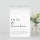 Simple Silver Glitter Wedding Invitation. A LARGER size 5.5” x 8.5” at a budget price, on a SEMI GLOSS 110 lb CARD STOCK, great for invitations, at roughly the same thickness as a postcard, or an elegant 110 lb LINEN stock – for a luxury, slightly thinner feel at great value. PLEASE NOTE THE OPTIONAL ENVELOPES ARE A LITTLE BIGGER IN SIZE AT 6.75” x 9” approx. This budget size alternative is also available in other paper choices. The FELT 100 lbs paper is buff colored, NOT white, so adds a rustic touch. The MATTE 80lbs paper stock is bright white, for crisp printing, great for your menus and programs, whilst the SATIN 80lbs paper is thin and light, ideal for enclosures. Simple and. Informal, your first names are large in stylish lowercase with the details at the beneath with a border of silver faux glitter at the top on both sides. Easily personalise the text.