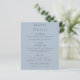 Simple Text Dusty Blue Wedding Menu. A budget price SMALLER 4.5” x 5.6” alternative. Available in a SEMI GLOSS 110 lb CARD STOCK which is the default option (recommended for invitations, similar to the thickness of a postcard), OR a SATIN FINISH 80 lb THINNER PAPER STOCK (ideal for enclosures). You can also change the font style and colors and the background colors on the front and back if you wish via the Click to Customize Further option.