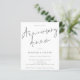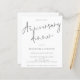 Budget Simple Wedding Anniversary Dinner. A budget price SMALLER 4.5” x 5.6” alternative. Available in a SEMI-GLOSS 110 lb CARD STOCK which is the default option (thicker for invitations), OR a SATIN FINISH 80 lb THINNER PAPER STOCK (ideal for enclosures). Envelopes are an optional extra and are slightly larger than the card size. Shown in classic black and white. This modern design has elegant informal set script for Anniversary Dinner and the rest of the typography you can easily personalise. You can also change text and background colors on either side if you wish via the Customize Further option.