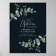 Beautiful delicate eucalyptus foliage wedding budget welcome sign decor design. Modern elegant on trend sage green, black, navy blue and white stylish contemporary rustic collection. Ideal for spring, summer, fall, autumn or winter weddings.