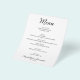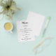 An excellent value, a white dinner menu printed on thinner 80 lb uncoated matte paper features your food choices in chic lettering. Perfect for a modern wedding reception, wedding rehearsal dinner, anniversary party or any special event with a sit-down dinner. Measures 4.5" x 5.6", but you can choose from 3 paper sizes for your menu. MORE DESIGNS and colors in our store. The Live Design Service can help you with the layout of your design, the fonts or adjust colors if needed.