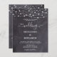 Invite friends and family to your wedding with these elegant yet rustic chalkboard and string lights wedding invitation cards. These unique slate all in one wedding invitations feature elegant white string lights on gray chalkboard slate design with wedding website qr code for easy RSVP's. Personalize these chalkboard wedding invitations with names, wedding date, and location. See our wedding collection for unique wedding invitations, wedding photo albums, guest books, party gifts, and more! COPYRIGHT © 2020 Judy Burrows, Black Dog Art - All Rights Reserved. Budget Slate Rustic String Lights QR Code Wedding Invitation