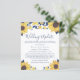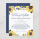 An inexpensive, budget-friendly bright and cheerful smaller wedding update announcement featuring yellow and navy blue watercolors of sunflowers, florals and foliage, "Wedding Update" in stylish navy blue script and the details in simple navy blue typography. You can easily personalize "Wedding Update" to something similar in length (e.g., "Smaller Wedding," "Reduced Wedding," etc.), your reduced wedding message in more detail and add any virtual wedding events and future celebrations.