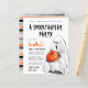 Calling all ghosts and ghouls! Join us if you dare...! This spooktacular birthday party invite features a hand-drawn ghost holding an orange pumpkin, there is a funny shocked look on his face! The event details and the birthday boy's name appear on the left-hand side in a fun scary font and bold capital letters. These cards reverse to a painted pattern of black, gray, and orange lines. Perfect for any October or fall-themed party! We have added an extra line with costume party details, but you can change this to any extra information you'd like to convey to guests. To start editing this design, simply click on "Personalize" and modify the text in the template boxes to suit your event and needs. For more advanced customization, like size, placement, fonts, and colors, scroll to "Click to customize further" to access Zazzle's design tool. As part of the budget selection on Zazzle, this sheet isn't a standard invite size or paper quality. If you want this design on an invitation card you can find it in our store or use the Zazzle Make Machine to transfer it onto the product of your choice. Feel free to message me with any questions, I'll be happy to help! Just please note that I can't modify or interfere with an existing order. Browse my store for more Halloween or fall-themed birthday party invitations.