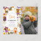 Invite family and friends for a spooktacular time with these cute Halloween birthday party invitations. The left side of this budget invite is decorated with a hand-painted border of fun Halloween characters, there are kids in costumes, black cats, bats, smiling pumpkins, ghosts, a dancing skeleton, a mummy, spiders, balloons, stars, magic potions, a heart-eyed skull, a flying broomstick, candy corn and more! Inside the frame, the birthday boy's name appears in big script hand-lettering, with her age and party details below in elegant typography. On the right-hand side of the page, there is a photo of the birthday boy! We love that photo invitations can be kept as keepsakes, stuck to the fridge, or pinned to a photo board! The color scheme for the text is a classic Halloween palette: orange, purple, gray, and black! The cards reverse to a pastel orange color. We have chosen "FIVE" for the template age, but these cards are great for a first birthday party or kids of any age! To customize, simply click on "Personalize this template" and edit the text to feature your own celebration information! As part of the budget selection on Zazzle, this sheet isn't a standard invite size or paper quality. If you want this design on an invitation card you can find it in our store or use the Zazzle Make Machine to transfer it onto the product of your choice. If you have any questions, please don't hesitate in reaching out - I'll be happy to help! Just note that I cannot modify an existing order. Browse the collection above or visit my store for more Halloween-themed birthday party invitations.