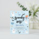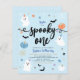 Spooky one cute ghost Halloween 1st birthday party invitation. Modern Halloween-themed design for a spooky party! This birthday invitation features spider's webs, ghosts, pumpkins, bats, spiders, leaves, candy corns, stars and daisies. This invite is great for little boys!