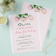 Cute and adorable budget strawberry themed birthday party. Typography style Our Sweet One Is Celebrating Her Berry First Birthday in pink style. Perfect for summertime, spring time or anytime fun! Watercolor art work with blush pink strawberries.