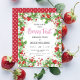 This is a cute strawberry based and budget friendly berry first birthday invitation featuring a sweet frame of strawberries, white flowers and greenery.
