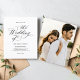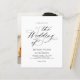 This wedding invitation features an elegant and minimalistic design, with classic black calligraphy and serif fonts on a white background.